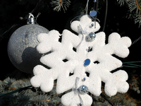 Новогоднюю ель города украсили в «снежном» стиле