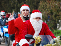 Новогодний парад Дедов Морозов: на мотоциклах, ходулях и эвакуаторе
