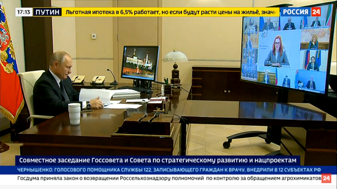 «Эпидемия коронавируса стала вызовом для национальных экономик, для социальной сферы практически всех государств, серьезным испытанием для людей, — сказал Президент России. — Но все это не отменяет повестки развития. Тоже мы с вами об этом неоднократно уже говорили. Для нашей страны качественное непрерывное движение вперед имеет абсолютно стратегическое, принципиальное, жизненно важное значение. Учитывая при этом всю совокупность демографических, геополитических, экономических и технологических факторов, мы не можем себе позволить остановиться».