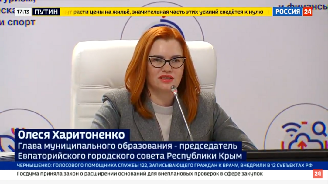 Глава города Евпатории Олеся Харитоненко приняла участие в совместном заседании Государственного Совета Российской Федерации и Совета по стратегическому развитию и национальным проектам, которое провел Президент России Владимир Владимирович Путин в режиме видеоконференции.