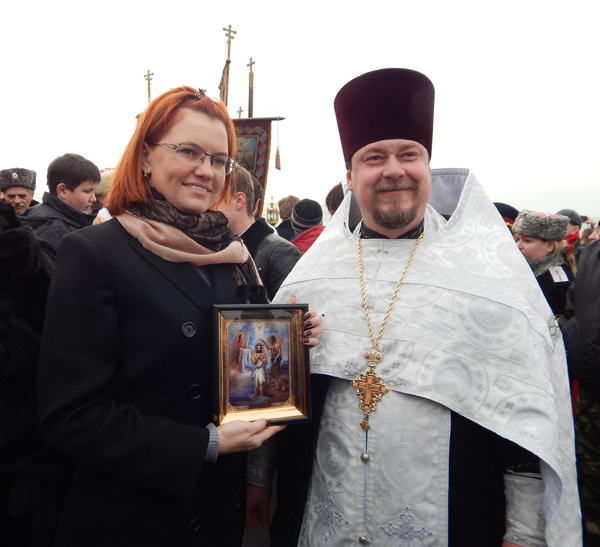 В Евпатории сегодня прошли Божественный молебен и традиционные крещенские купания. На одном из пляжей собралось большое количество верующих и желающих окунуться в освященное море. Посетила праздничное мероприятие и глава муниципального образования – председатель Евпаторийского городского совета Олеся Харитоненко, где благочинный Евпаторийского благочиния протоиерей Александр Дворников вручил ей в дар настольную икону «Крещения Господня» и пожелал терпения и здоровья.